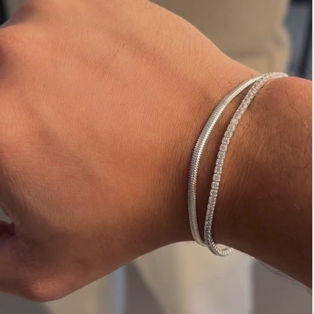 A Riviera Alba, com zircônias cristais delicadamente lapidadas, oferece um brilho sofisticado e ajusta-se perfeitamente ao pulso (16 a 19 cm).